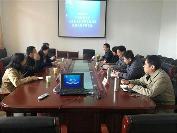 4月10日,广西民族大学马克思主义学院院长陈媛、副院长唐展风一行4人来我院考察交流。院长沈大光、党委书记郄捍烈、院长助理张高臣、赵付科、教授委员会主任毛玉美同来访客人进行座谈。