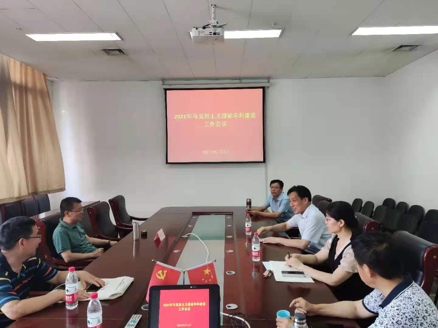 6月11日下午,马克思主义学院在606会议室举办2021年马克思主义理论学科建设工作会议。山东大学儒学高等研究院马来平教授、山东省社会科学院杨晓伟主编、院党委书记郄悍烈、院长沈大光、副院长张高臣、副院长徐莹出席会议。马克思主义学院学科骨干教师、学生代表三十余人参加座谈会,会议由副院长徐莹主持。