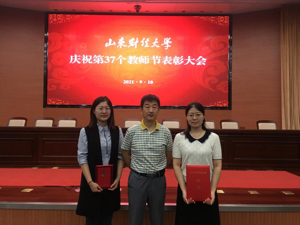 在本次表彰中,我院荣获“山东财经大学2021年师德师风先进集体”,并有五位老师荣获七项表彰。其中,徐莹荣获“山东财经大学2021年师德师风先进个人”称号及“2020年山东省高等教学名师”称号;滕淑娜荣获“山东财经大学2021年度优秀教师”称号及“山东省第三十四届社会科学优秀成果奖三等奖”;在首届全省学校思想政治理论课教学比赛中,王静荣获特等奖(本科“原理组”),范子谦荣获二等奖(本科“纲要组”),王真真荣获二等奖(本科“概论”组)。