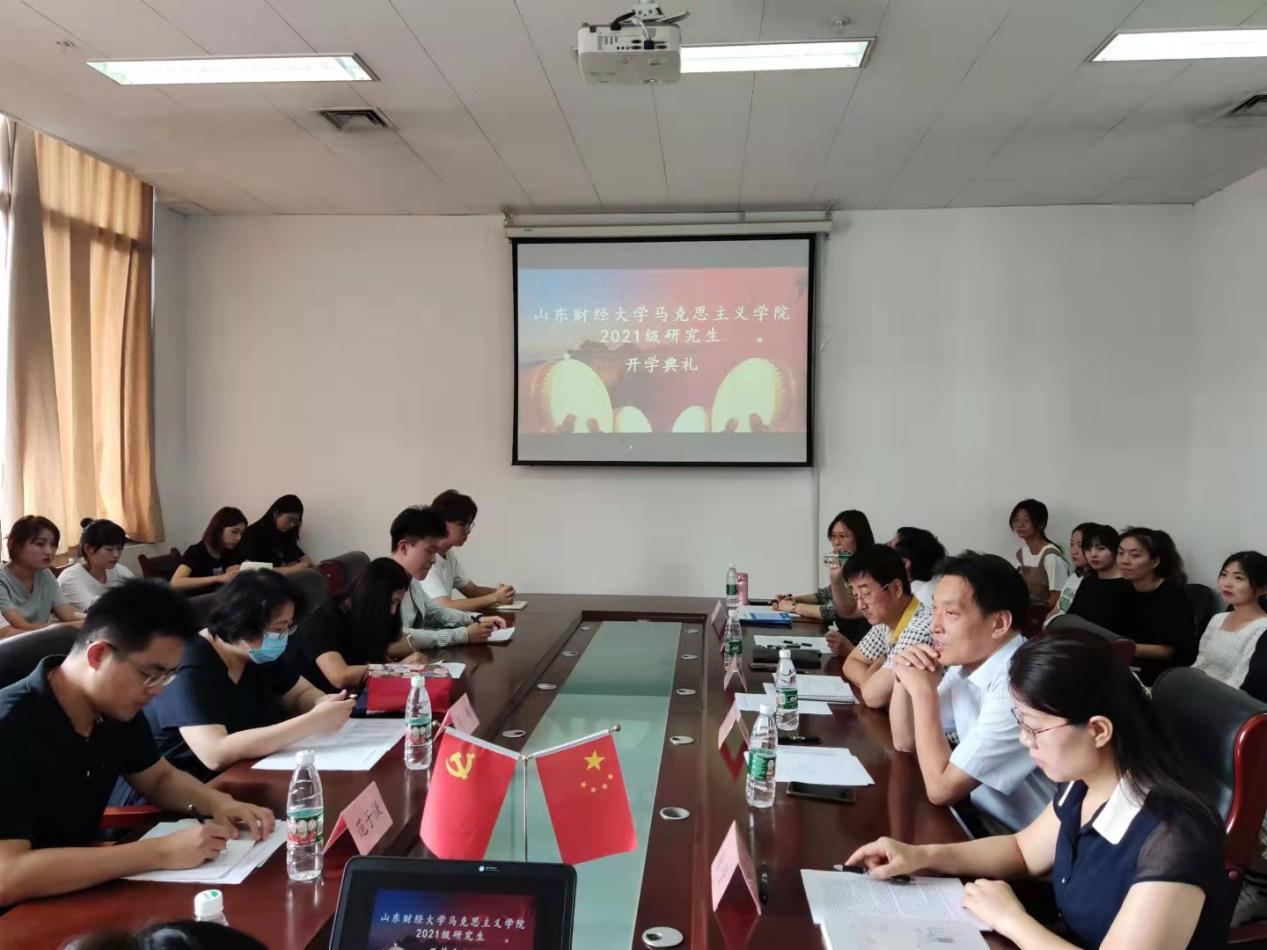9月13日,山东财经大学马克思主义学院开学典礼暨新生入学教育活动于图书馆606举行,院党委书记郄捍烈、院长沈大光、副院长徐莹、副院长张高臣、学工办主任高小燕、教师代表王敏出席会议,全体2021级硕士研究生参加开学典礼。会议由学院党委副书记王恩娟主持。