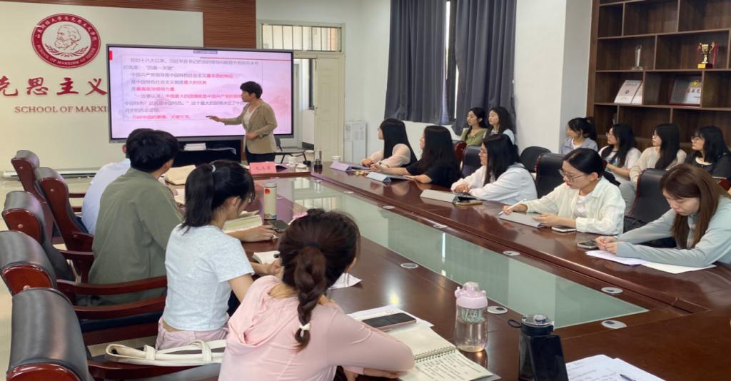 活动伊始,毛玉美教授带领同学们围绕毛泽东同志《青年运动的方向》、《永久奋斗》以及习近平总书记《在纪念五四运动100周年大会上的讲话》、《习近平关于中国式现代化论述摘编》等经典著作及文章展开学习。