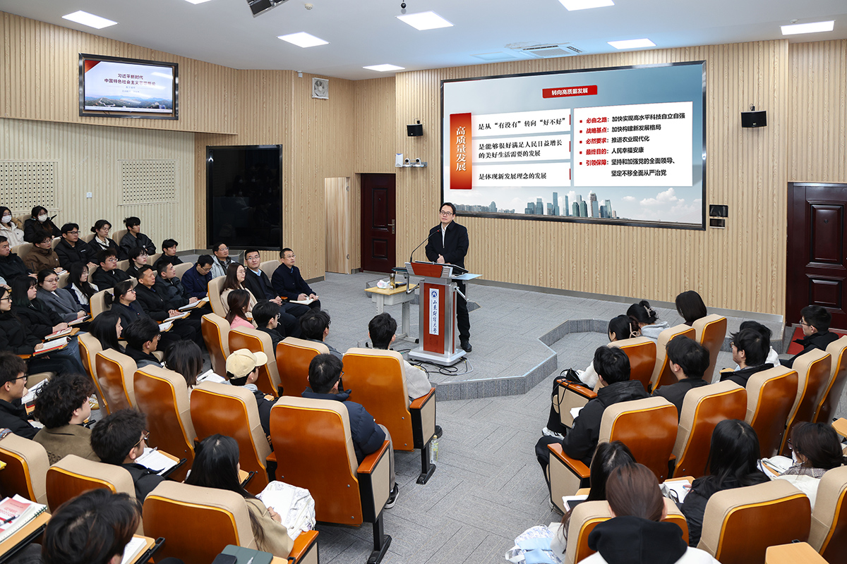 校长洪俊杰为学生讲授思政课“推动高质量发展”
