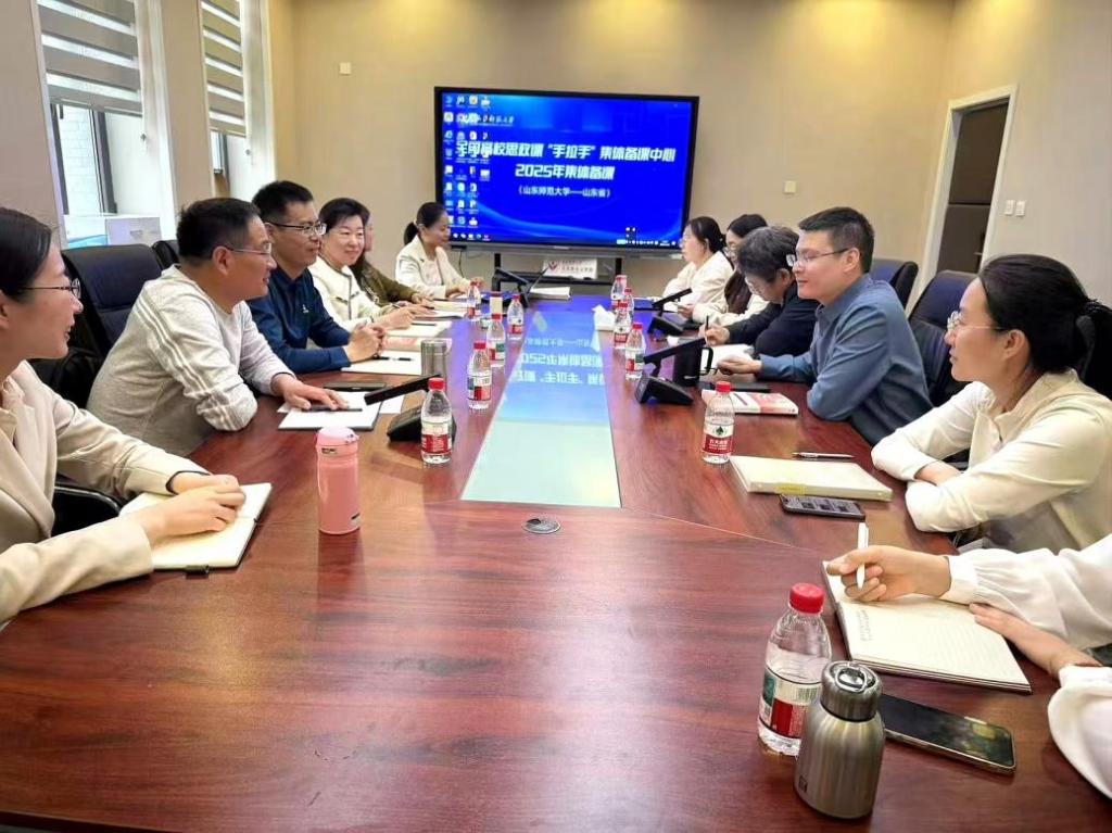 2025年4月24日下午,山东财经大学《习近平新时代中国特色社会主义思想概论》(以下简称《概论》)教研室与山东师范大学《概论》教研室,在山东师范大学长清校区举行了联合集体备课活动。本次集体备课活动依托山东师范大学全国高校思政课“手拉手”集体备课中心平台,双方围绕《概论》课程“第十章建设社会主义文化强国”内容,展开了充分讨论,取得了丰硕成果。