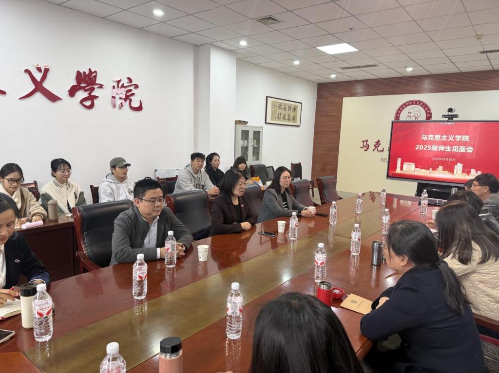 10月19日下午,马克思主义学院2025级研究生师生见面会在学院606会议室举行。院长徐莹、全体硕士生导师及2025级硕士研究生参加了此次会议,会议由副院长侯继迎主持。