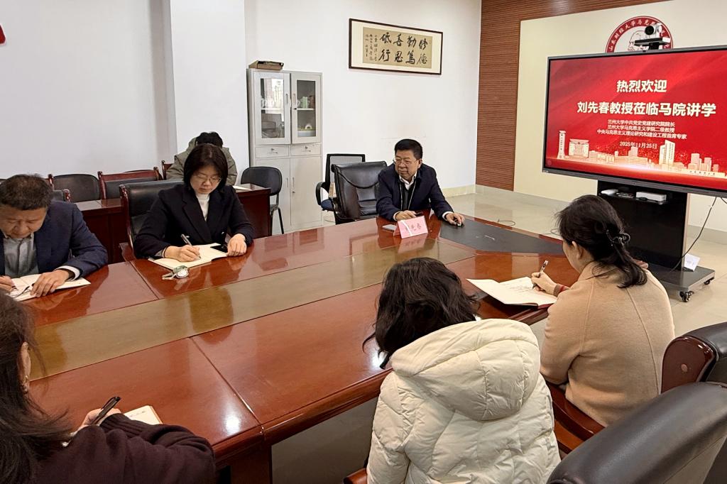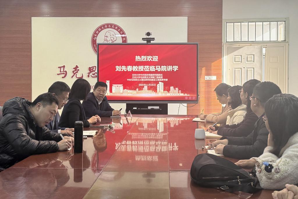 为深入学习领会党的二十届四中全会精神,切实推进会议精神进课堂、进师生头脑,提升思政课教学的理论深度,2025年11月25日,我院特邀兰州大学马克思主义学院刘先春教授莅临指导,并作专题辅导报告。报告会由院长徐莹主持,学院领导班子成员、各教研室教师代表、学生代表共同聆听了此次报告。