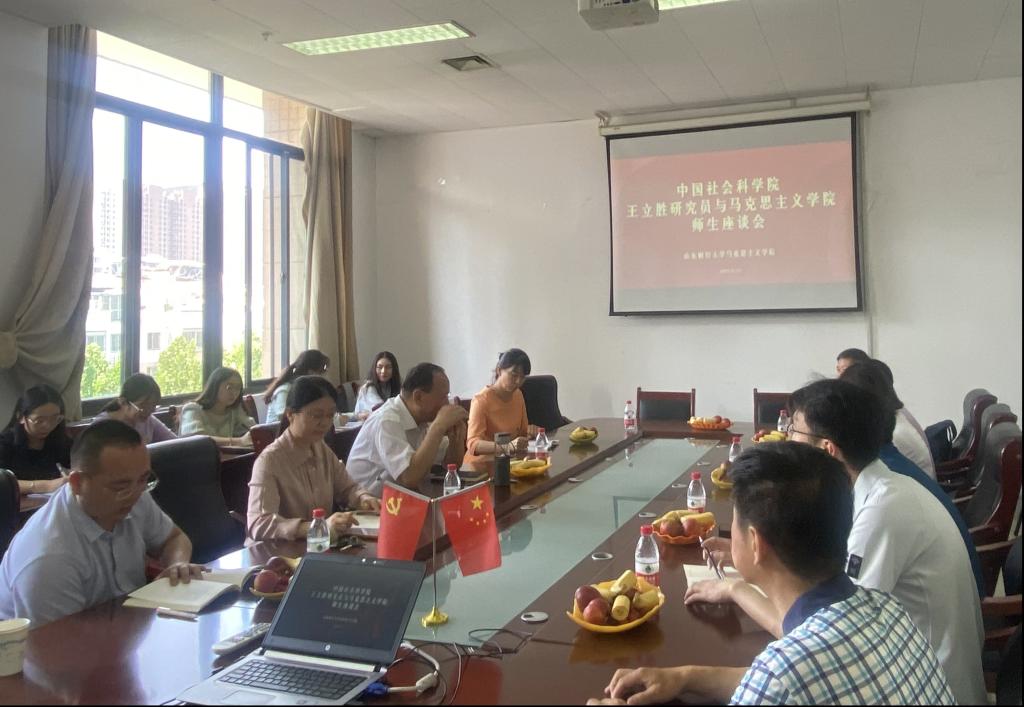 6月13日上午,中国社会科学院哲学研究所党委书记、副所长王立胜研究员应邀在学院会议室参加马克思主义学院师生座谈会。学院党委书记石伟、院长徐莹以及学院领导班子成员出席,学院部分教师和研究生到场参加,会议由徐莹院长主持。