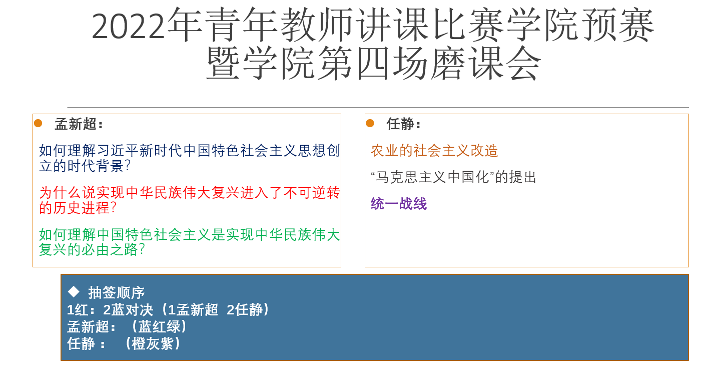 学院于11月22日晚通过线上腾讯会议的形式举办了2022年度青年教师讲课比赛学院预赛暨学院第四场磨课会。