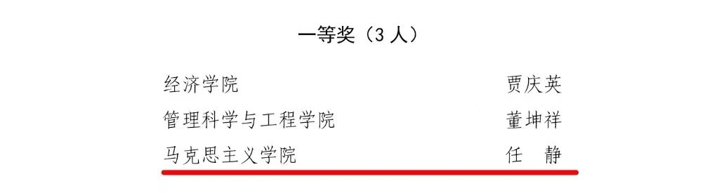 近日,山东财经大学2022年度青年教师讲课比赛和2023年度教学创新大赛结果揭晓,我院多名教师在比赛中斩获佳绩。其中,我院教师任静在2022年度青年教师讲课比赛中荣获一等奖,王广教授及其团队成员蔺淑英教授、王静老师在2023年度教学创新大赛中荣获正高组三等奖,杨海波副教授及其团队成员闫杰副教授荣获副高组二等奖,王真真老师荣获中级及以下组一等奖。