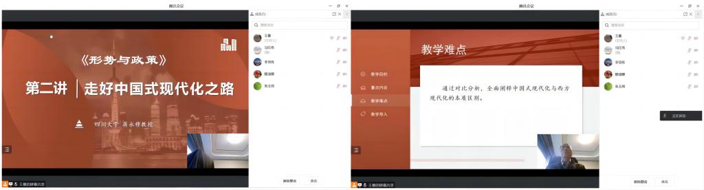 在每学期开课前,教研室负责人组织任课老师规范开展集体备课,按照教育部办公厅引发的《高校“形势与政策”课教学要点》,明确本学期的教学目标、确定教学专题、剖析重难点、研制教学课件、规范教学要求。2022年,任课老师参加了全国高校“形势与政策”教学创新中心组织的“党的十九届六中全会精神教学集体备课会”;2023年,任课老师参加了高等教育会议中心“2023年春季学期‘形势与政策’备课会”;2024年,任课老师全员参加了《形势与政策》集体备课会。通过集体备课、研讨,及时、准确、深入地推动党的创新理论进教材进课堂进学生头脑,不断加强新时代高校《形势与政策》课建设。在集体备课的过程中,老师们集思广益、取长补短、实现资源共享,发挥集体智慧。经验丰富的教师通过集体备课指导青年教学,进一步凝聚了教师团队合作精神,提高了教师整体的教学水平和科研能力。